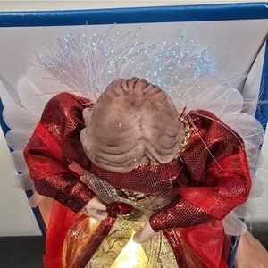 The topper features a serene angel subject, incorporating a sense of peace and wonder to your holiday setting. Made with materials that include fiber optics, it provides a stunning visual display as the light reflects off the delicate fibers, creating a magical ambiance in any space. Perfect for those who appreciate the harmony of modern design and holiday tradition.