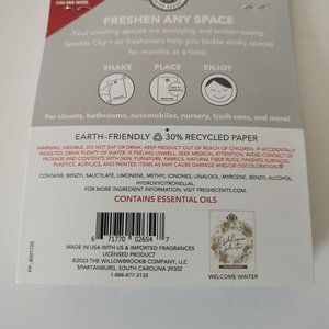 Add a touch of fresh pine scent to any room with these 2 packs of scented sachets by Holiday Style. The sachet is made of plant, wood, and paper materials and contains essential oils for a natural deodorizing effect. The scent of this sachet is a combination of fir tree and cedarwood, perfect for the winter season. These sachets are suitable for use indoors or outdoors and can be placed in a variety of areas such as cars, upholstery, toilets, fabrics, wardrobes, and even fridges. The sachet comes in a bag container and weighs 1.7 oz. It is an earth-friendly product made in the USA with 30% recycled paper. The theme of the sachet is winter with elements such as fir tree, cedarwood, Christmas, pinecone, flowers, and snowflakes.
