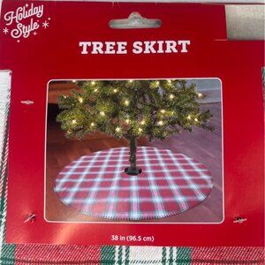 Holiday Style Christmas Tree Skirt Red Green Plaid 38" New