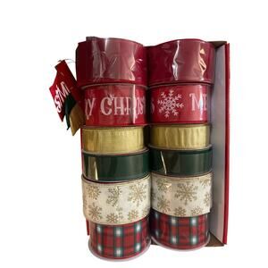 Get ready for the holidays at a fraction of the price! This brand-new set of 12 rolls of wired ribbon in festive colors and patterns is perfect for all your crafting and gift wrapping needs. Get creative with solid red, green, gold, plaid, snowflakes, and more!