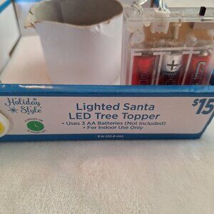 Holiday Style Lighted Santa LED Tree Topper Battery Operated Fabric Head