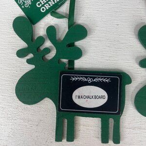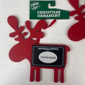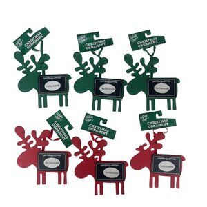 Holiday Style Reindeer Chalkboard Christmas Ornaments Set Of 6 Red Green New
