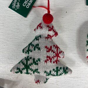 Holiday Style Set of 6 Christmas Ornaments Knit White Green Red New