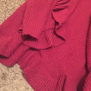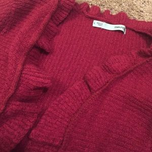 Cardigan perfect for the holidays! A little thicker to keep you cozy and ruffles to keep you girly :)