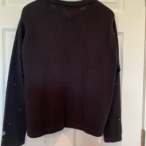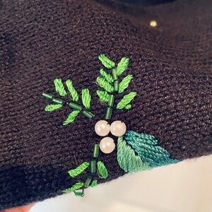 Excellent condition holiday sweater carefully stored in a chest of drawers. No flaws. Embroidered and faux pearls and gold beads. Originally had a faux velvet collar that didn’t do it any justice.