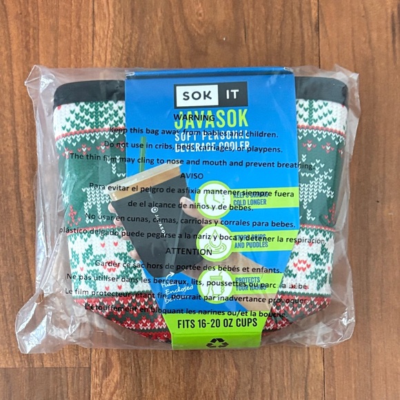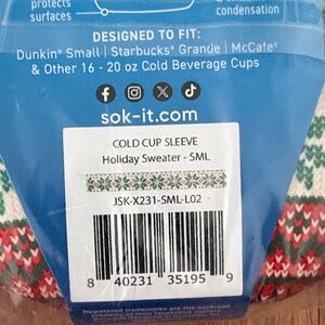 Small size Java Sok from Sok It. Fits small dunkin, starbucks grande. 16 oz- 20 oz cups.