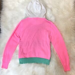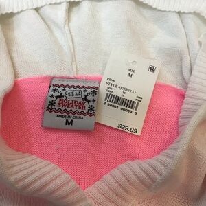 Holiday Sweater Girls Pink Hooded “Skiyalater” Pullover Sweater Size Medium. New with tag. From smoke free home.
