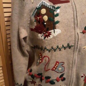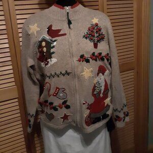 Holiday Sweater by Tiara International Christmas Collection The size is Medium Measurement from back of neck to bottom is 23"; Armpit to armpit measures 21" and sleeve length is 17"