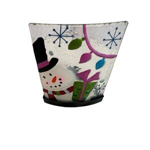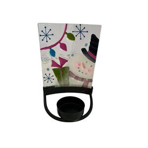 Holiday Tealight Candle Holder Christmas Snowman Glass Metal