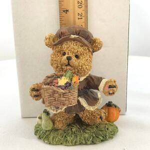 THANKSGIVING 'Pilgrim Bear' Teddy Bear with basket that opens to reveal a turkey and pumpkin. Rite Aid Corp. Basket hinge needs fix, doesn't stay all the way closed, no other visible damage.