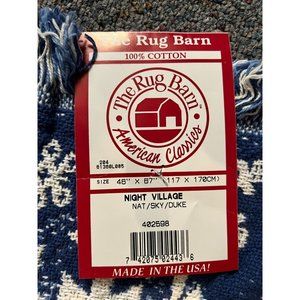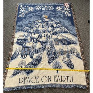 Cozy up with this superior quality Rug Barn's blue sturdy throw blanket, featuring a tranquil night village scene with the message "Peace on Earth". Perfect for adding warmth and style to your living space.