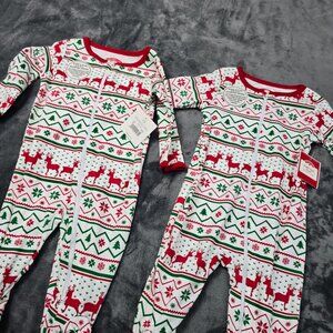 Holiday Time 3-6M Baby Sleep and Play Pajama Bundle Reindeer Footed