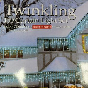 Offered here is a 150-Count Set of Holiday Time 3-Way Flashing Indoor/Outdoor Blue Curtain Icicle String Lights - 15ft White Wire