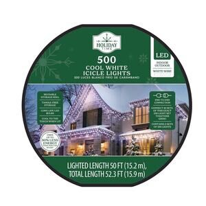 Holiday Time 500 Count Cool White LED Icicle Christmas Lights with White Wire