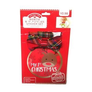 Holiday Time Baby Boy's Bowtie First Christmas Red and Black Plaid Photo Sticker