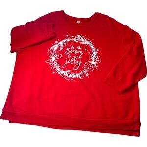 Holiday Time Christmas Sweatshirt Tis The Season To Be Jolly Red Women 2X Slits