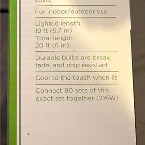 30 LED lights with multicolor to warm white transition. Perfect for indoor and outdoor use. 20 feet in length.