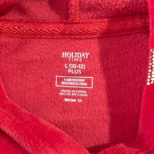 Holiday Time Dress Girls Size L (10-12) Plus Red Gold Bows Hooded Soft Christmas. Good pre-owned condition.