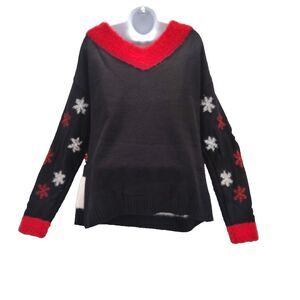 Holiday Time Embellished Black Red Snow Way Christmas Sweater XL 16-18 NWT