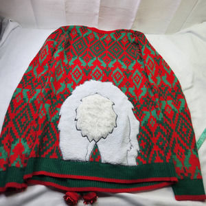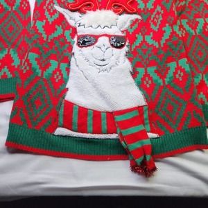 Style: Red and green knit Christmas sweater with festive holiday reindeer Llama front and back design