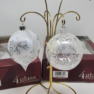 Holiday Time Glass and Glitter Lot of 8 Large 3" round Ornaments In Original Box