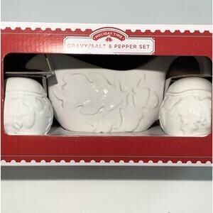 Holiday Time Gravy Salt Pepper Serving Set Thanksgiving Christmas Holiday NEW