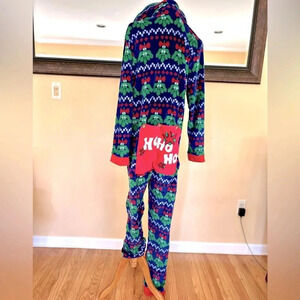Stay cozy and warm this holiday season with Holiday Time Unisex Ugly Christmas Kiss Me Union Suit. This onsie suit features the phrase "kiss me" with a Christmas sweater design. It is perfect for opening presents on Christmas morning. It even has cuffed sleeves and pants for a comfortable fit.