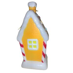 Brighten your holiday decor with the Holiday Time Lighted Gingerbread House. This 11-inch blow mold table top decoration is made from plastic and features a charming, multi-color design.