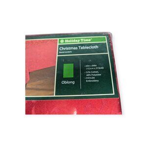 Holiday Time Matching Oblong Table Cloth & 5 Chair Covers- Red Embroidery NWT
