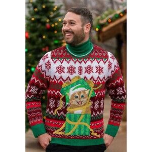 Holiday Time Men’s Kitty Cat In Box Ugly Christmas Sweater Size XL (46/48)