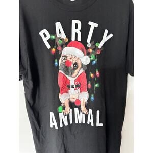 Holiday Time Men's Party Animal Pug Short Sleeve Pullover Graphic T-Shirt Size M