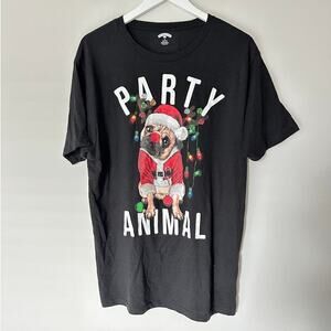 Holiday Time Men's Party Animal Pug Short Sleeve Pullover Graphic T-Shirt Size M