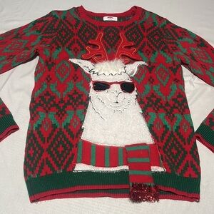 Holiday Time Men's Red Green Llama Festive Ugly Christmas Sweater Size Medium