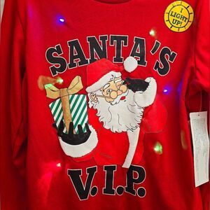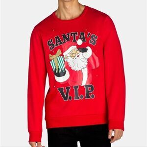 Holiday Time Men's Christmas Santa VIP Light Up Crewneck Fleece Sweatshirt