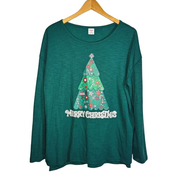 Holiday Time Merry Christmas Tree Long Sleeve Top Size L Green Festive Graphic