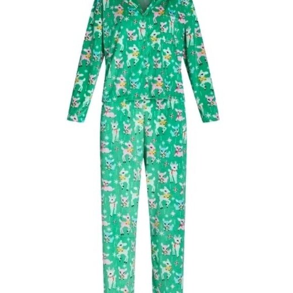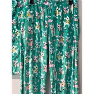 Holiday Time Pajama Set Women Christmas Green Mint Retro Reindeer Print PJ's NEW