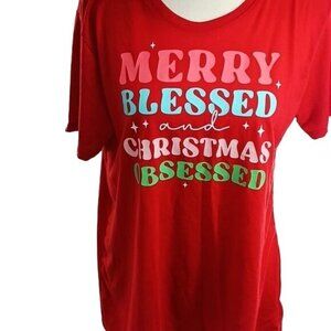 Holiday Time Red Graphic T Shirt Womens Size L Merry Blessed Christmas Obsessed