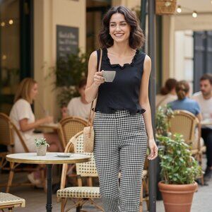 Charming red sweater with white tree patterns. Ideal for holiday celebrations.