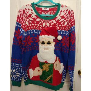 Men's Holiday Time Santa Claus Ugly Christmas Sweater W REAL Holder Size M Adult.