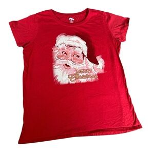 Holiday Time Santa Shirt Women’s XL 16-18 Red Merry Christmas Tee Vintage Look