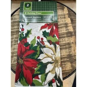 Holiday Time Set Of 2 Christmas Napkins Damask 17 X 17 Red Green New