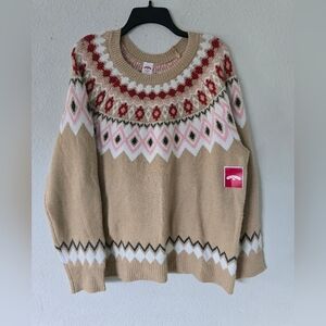 Holiday Time Sweater Women 2X Plus Long Sleeve Grannycore Tan Red Fair Isle New