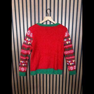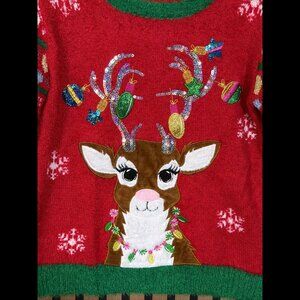 Holiday Time Ugly Sweater Large Plus Womens Red Reindeer Crewneck Pullover
