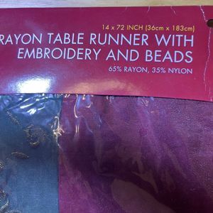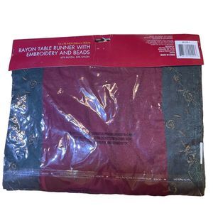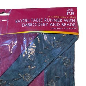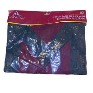 Holiday Time Vintage Rayon Table Christmas Runner w/ Embroidery & Beads 72”x14”