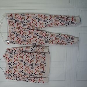 Size Medium. Crew neck top with jogger-style bottoms. Perfect for family photos or just lounging around the house. Elastic waistband.