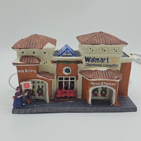 This is a Holiday Time Walmart Supercenter and Salvation Army Christmas village decor piece and it comes in the original box.