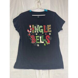 Holiday Time Womens Christmas T-Shirt 2X Black With "Jingle Bells" Design