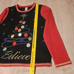 Holiday Time Women's Ugly Christmas Sweater - Christmas Tree Size S 4-6 Black