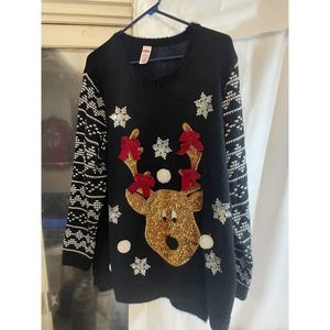 Holiday Time Womens Ugly Sweater Gold Reindeer Size 2XL🔥