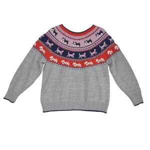 Holiday Time Women's XL DOGS Fair Isle Knit Sweater, Gray Silver Christmas Cute